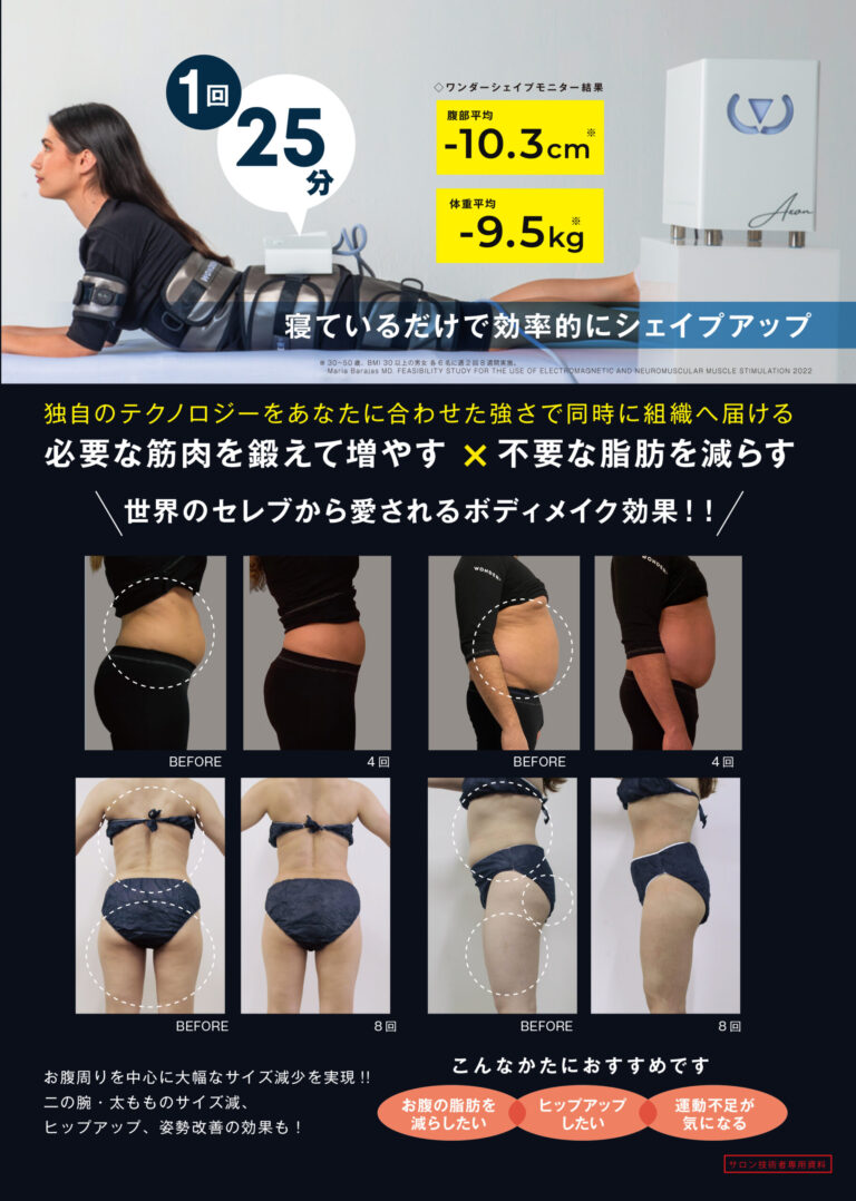 WONDER SHAPEは、航空宇宙産業テクノロジーを活用した、今までにはない別次元の筋肉トレーニング。整った身体を ” 戻らない状態へ導くため ” の筋肉強化プログラムです。